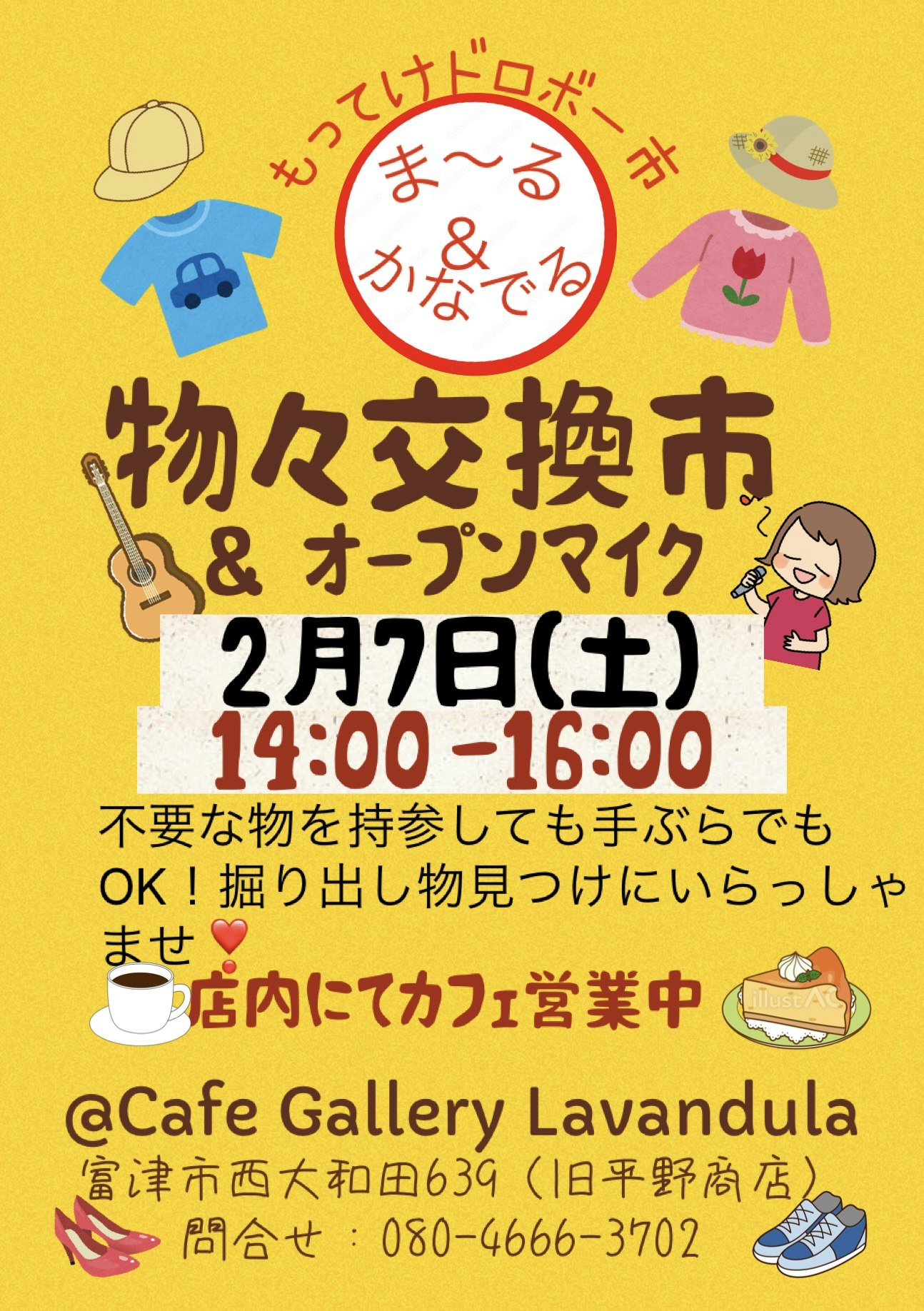 - 【参加要領】❶まーる 原則として、品物は、当日お持ち込みいただき、もらわれなかったもの はお持ち帰りください。 また、ご本人がご参加いただき、 品物を新しい持ち主に手渡してください。 持ち込むものがない方も、掘り出し物を見つけに来るだけでOKですよ。❷かなでる当日は店内のステージを開放して、オープンマイクの時間にしますので、練習がてらでも、気まぐれでも楽器に触れて、音楽を楽しみたい方はぜひいらして下さい。名づけて、「音々交換会 "かなでる♪"」 ソロでも、ユニットでも、バンドでもかまわないので、ラワンドゥラのあったかい空間で音を奏でながら、人と人もつながっていくようなそんな素敵な時間をすごしにいらっしゃいませんか?